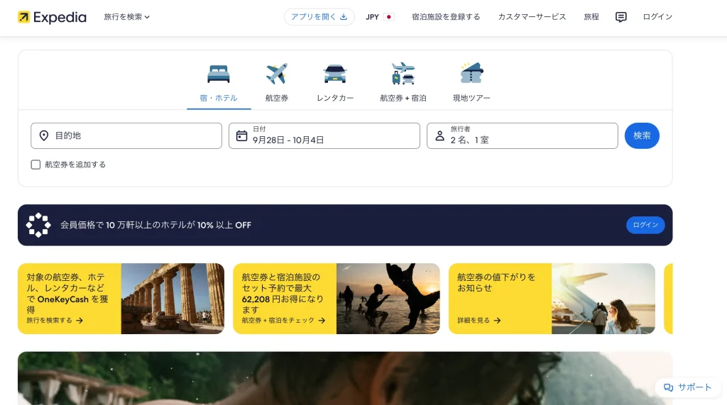 - Expedia(エクスペディア): 世界規模のネットワークと強力なセット割が魅力