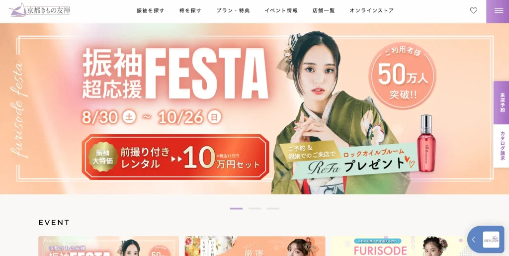 50年以上の歴史を誇り、これまで50万人以上の成人式をサポートしてきた実績は、まさに信頼の証 。テレビCMなどで名前を聞いたことがあるお母様も多いのではないでしょうか 。