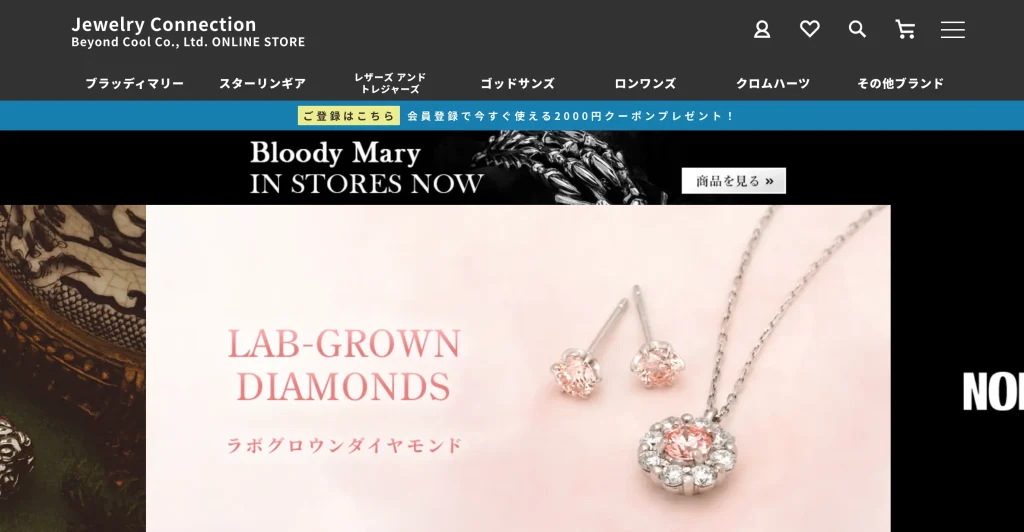 「Jewelry Connection」は、単なるアクセサリー通販サイトではありません。**Chrome Hearts(クロムハーツ)Bloody Mary(ブラッディマリー)**といった、世界中のセレブやアーティストから愛されるブランドの正規取扱店が集結した、特別なオンラインストアです 。