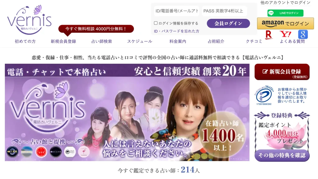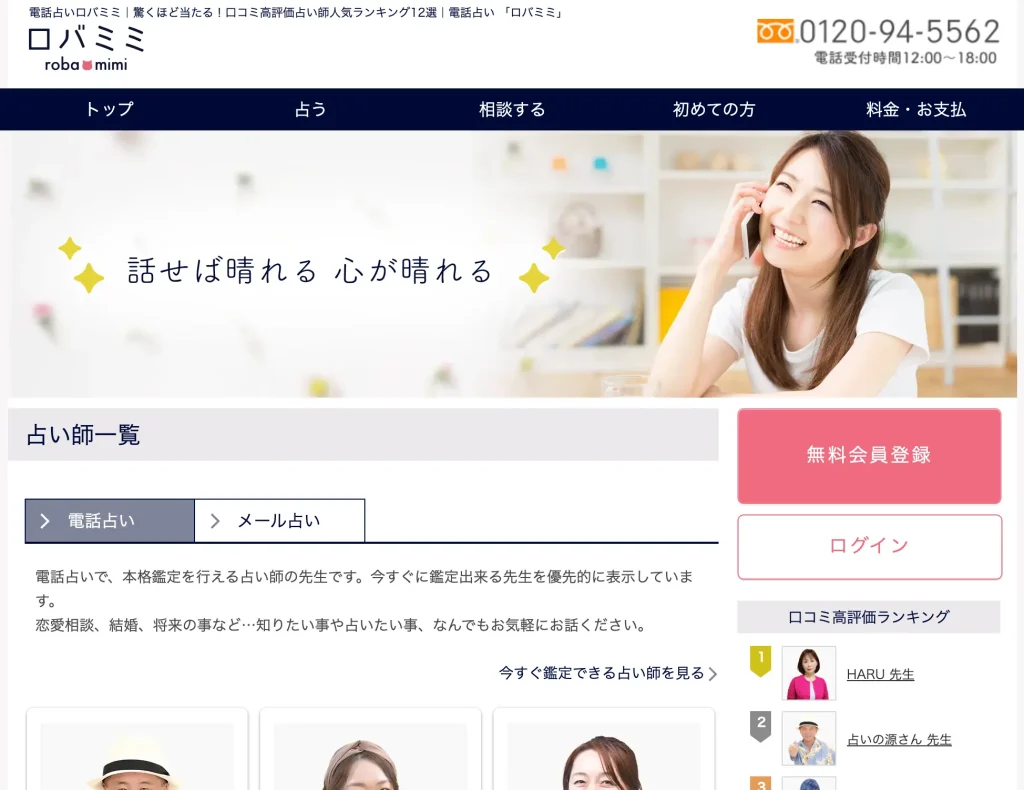 料金面では、ロバミミと同じく通話料が無料なのが嬉しいポイント 。鑑定料金は1分180円からと、コストを抑えたい方にもおすすめです 。新規登録で