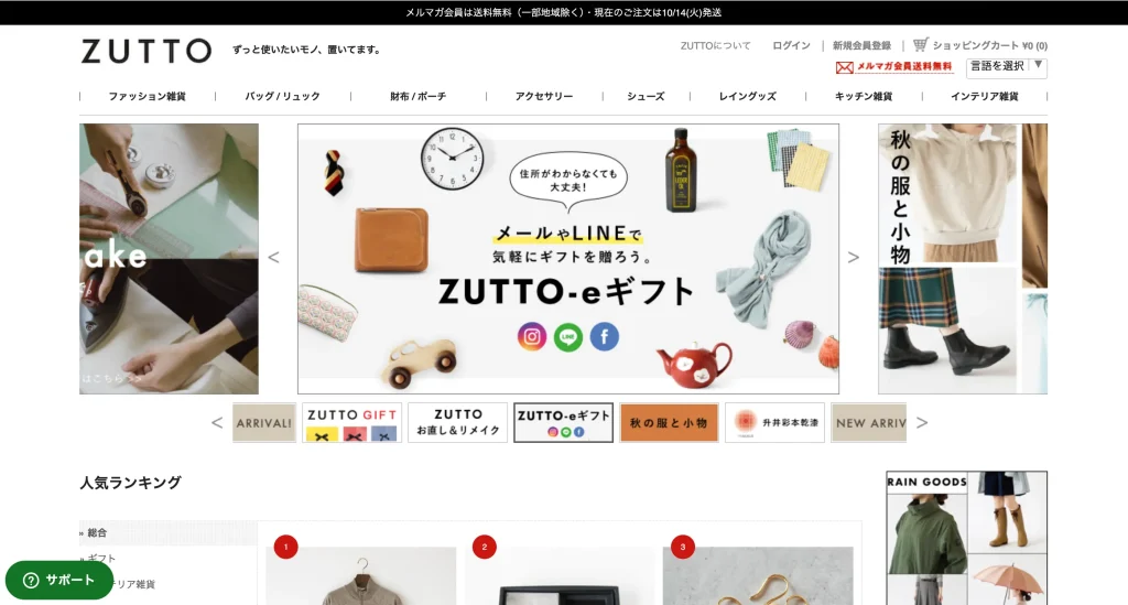 - ZUTTO:「ずっと使い続けたいモノ」をコンセプトに、国内外から長く愛せるアイテムを厳選するショップ。