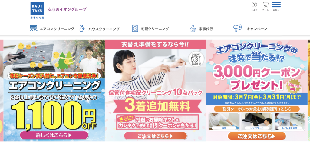 - 価格: エアコンクリーニングは約9,000円から、キッチン清掃は約13,000円から。プランによりキャンペーンや割引がある。